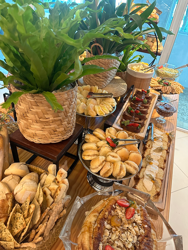 Imagine-se rodeado por pessoas queridas em um ambiente acolhedor, elegante e vibrante. A mesa ganha vida com cores, aromas e texturas — uma composição cuidadosamente pensada para transformar sua manhã em uma experiência inesquecível.
